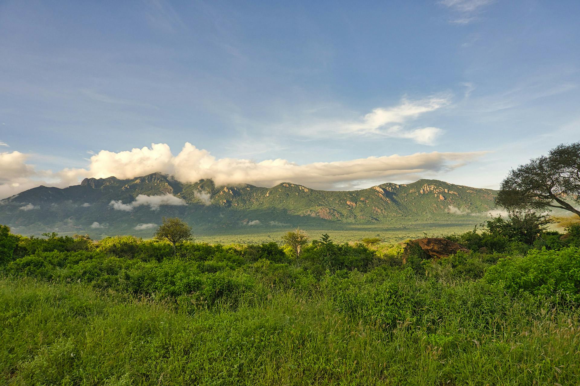 Aus der Vogelperspektive betrachtet schmiegt sich die Taita-Taveta-Landschaft in einen riesigen Halbkreis ein, der von den beiden Nationalparks Tsavo Ost und Tsavo West gebildet wird – als würde sich eine Landzunge aus Siedlungen, Weiden und Äckern in ein Meer aus weiten Savannen, vereinzelten Flüssen und Lavafeldern schieben. Der Blick von oben offenbart auch, warum mitten durch das besiedelte Land einer der zehn wichtigsten Wildtier-Wanderwege der Region führt: Für viele Elefanten, Löwen oder Zebras führt der direkte Weg von einem Teil des Nationalparks in den anderen oder zu den südöstlich liegenden Marungu-Bergen genau hier durch. Die Wildtiere nutzen ihre angestammten Wege durch die Taita-Taveta-Landschaft. Aus dem Blickwinkel der Menschen bedeutet dies, dass Begegnungen mit Wildtieren an der Tagesordnung sind. Das kann zu Konflikten führen, birgt aber auch eine Chance: Die Möglichkeit, Wildtiere in freier Wildbahn zu erleben, könnte zahlreiche Tourist:innen in die Region bringen.