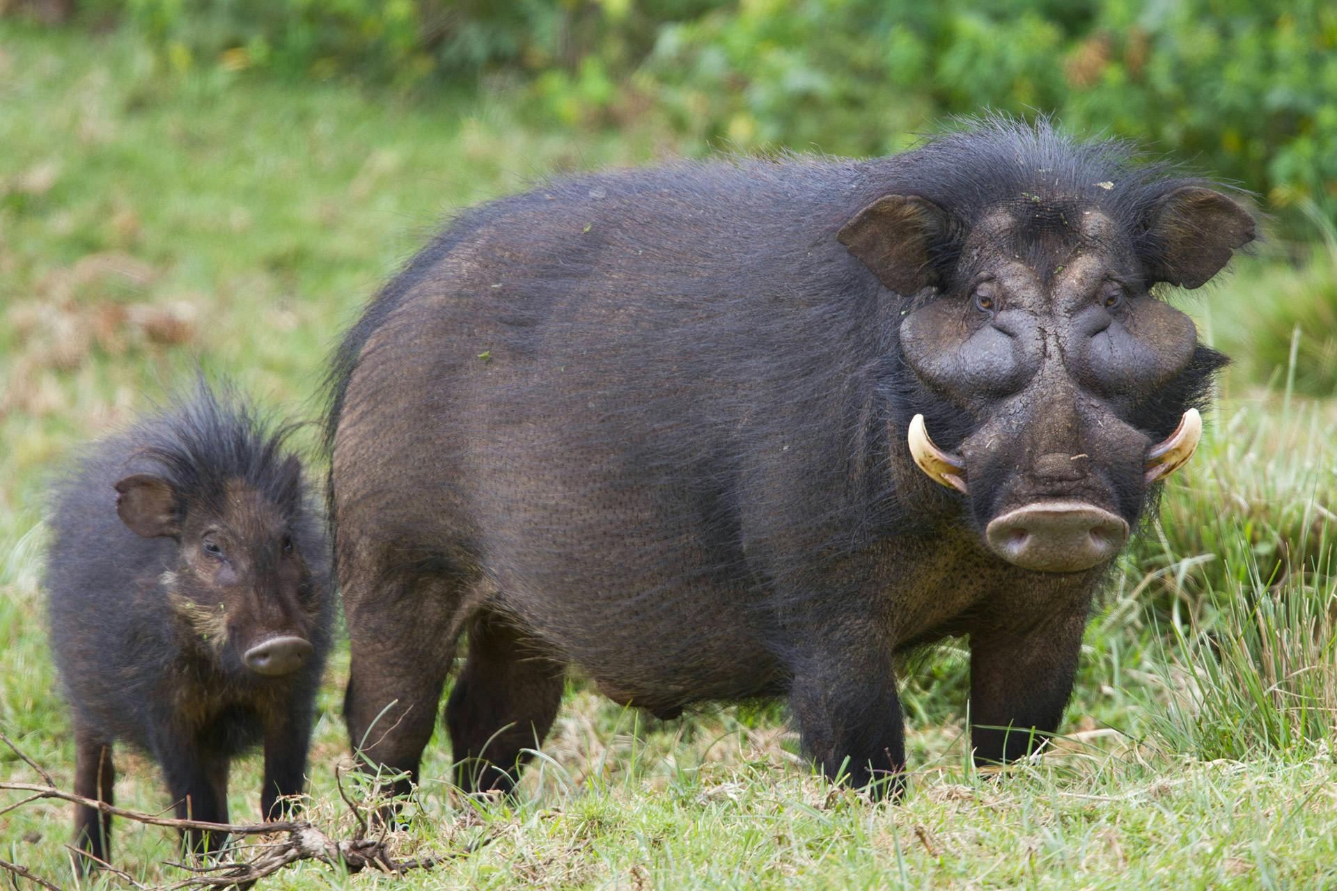 Seidenturako, Bergbussard, Braunsegler, Kehlbindenspecht, Pirolgimpel, Bongo, Gelbrückenducker, Riesenwaldschwein, Leopard, Elefant, Hyäne, Afrikanischer Büffel, Schwarz-weißer Stummelaffe