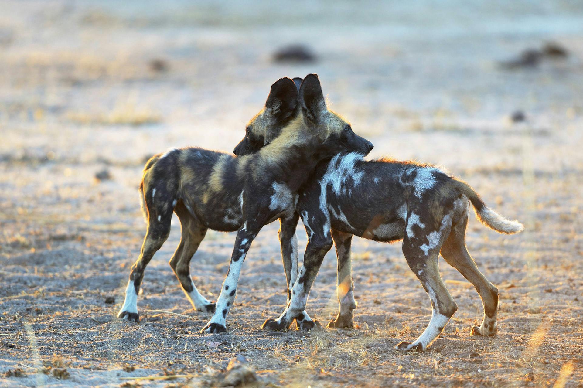 Das Zusammenleben der Wildhunde ist von sozialem Verhalten geprägt. Gemeinsam kümmern sie sich nicht nur um die Jungen, sondern ebenso um kranke oder verletzte Tiere. Und auch beim Beutemachen sind sie ein unschlagbares Team: Die ganze Gruppe bricht gemeinsam zur morgendlichen oder abendlichen Jagd auf. Zurück bleibt nur, wer zu jung oder krank ist. Hat das Rudel eine Gazelle oder vielleicht ein Impala ins Visier genommen, erweisen sich die Wildhunde als ausdauernde und schnelle Jäger. Mit Geduld und Spitzengeschwindigkeiten von bis zu 55 Stundenkilometern bringen sie ihre Beute fast immer zur Strecke.